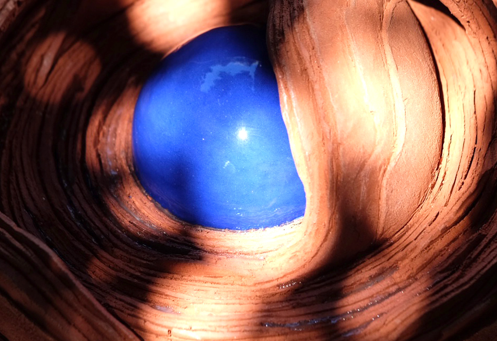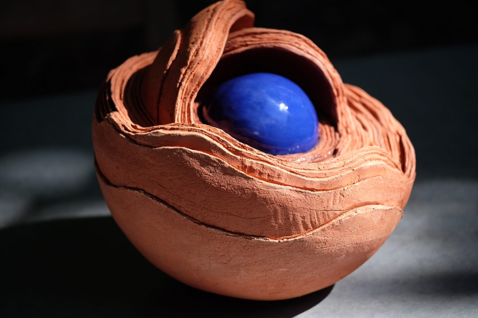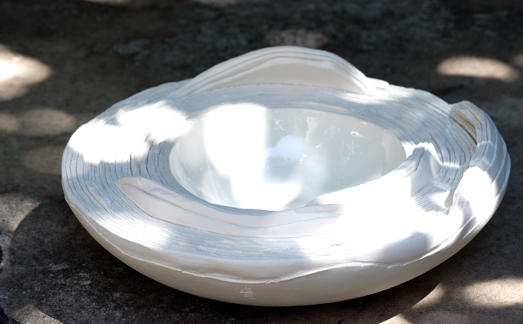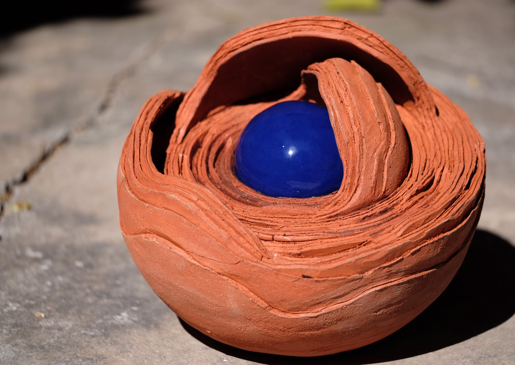 The layering holds space as an active material: sometimes open as a vessel, sometimes sealed, sometimes staged with small figurative forms at the rim of emptiness. In some works the circles break, erode, and fall away, leaving the loop interrupted—an insistence on fragmentation rather than closure. Built as strata, the forms explore time as a circular event—held, compressed, and sedimented in layers of clay. Across these variations, the repeated circle becomes a way to test how form can carry time, containment, and relation.