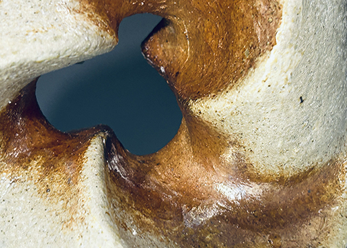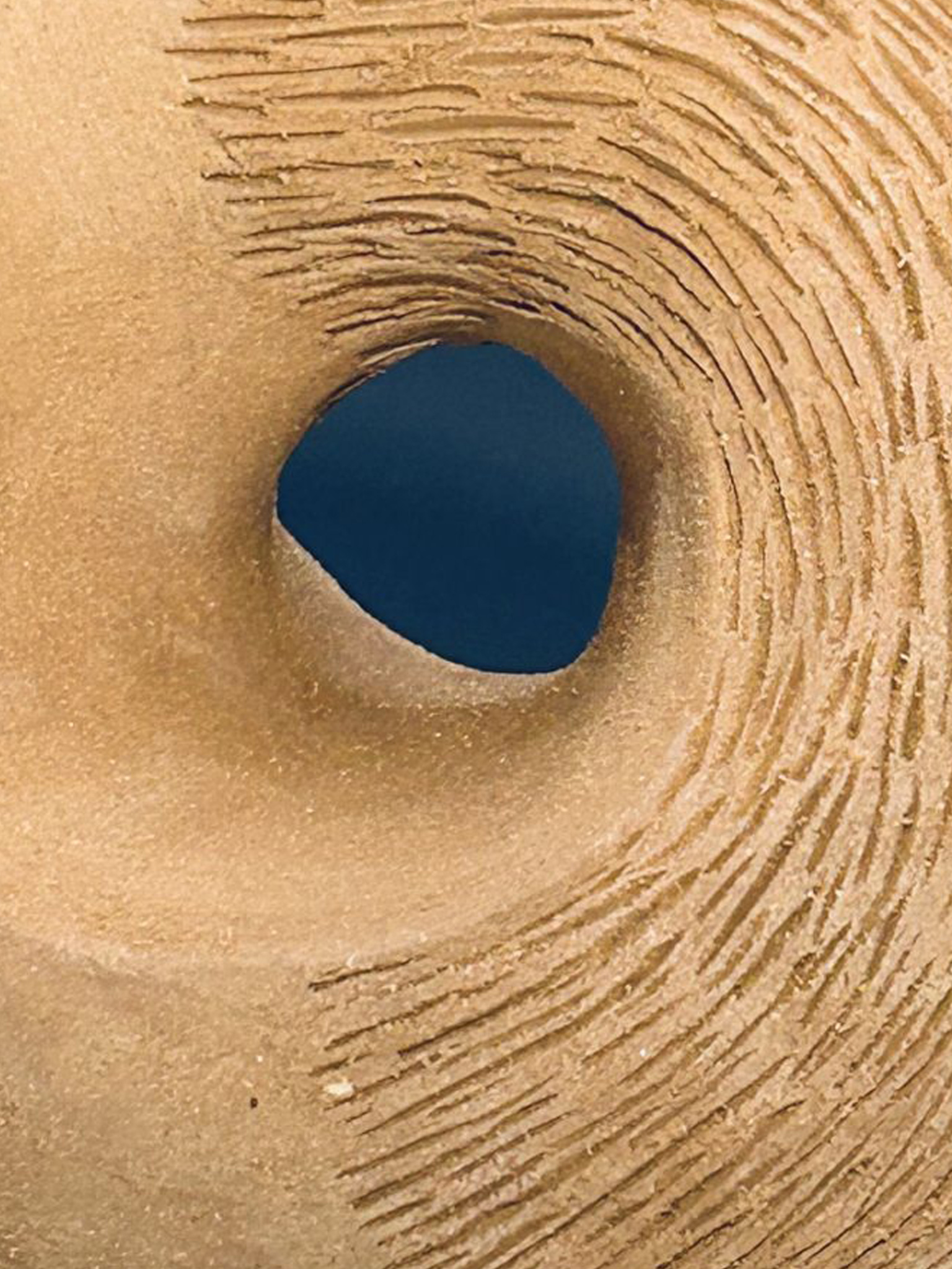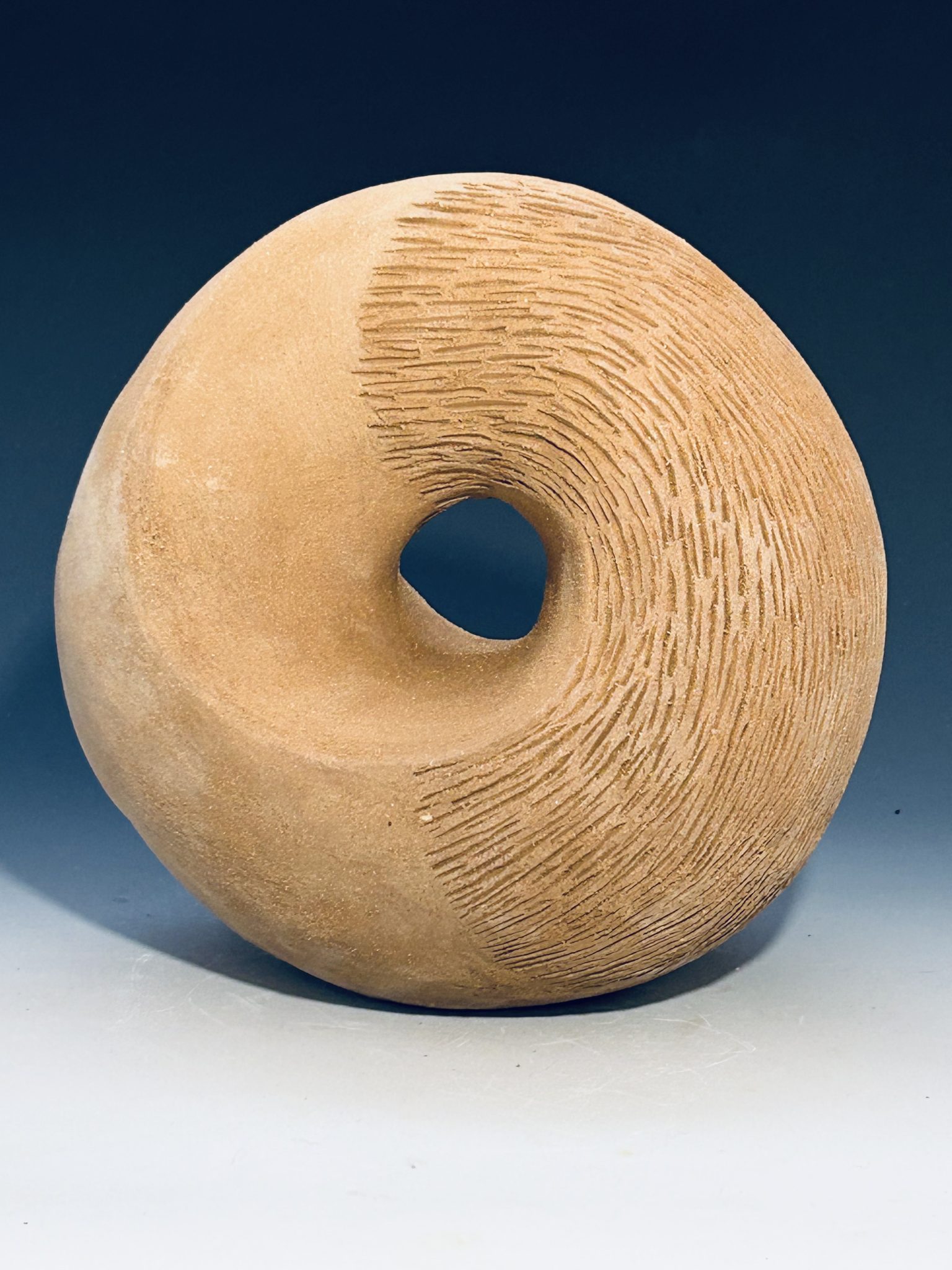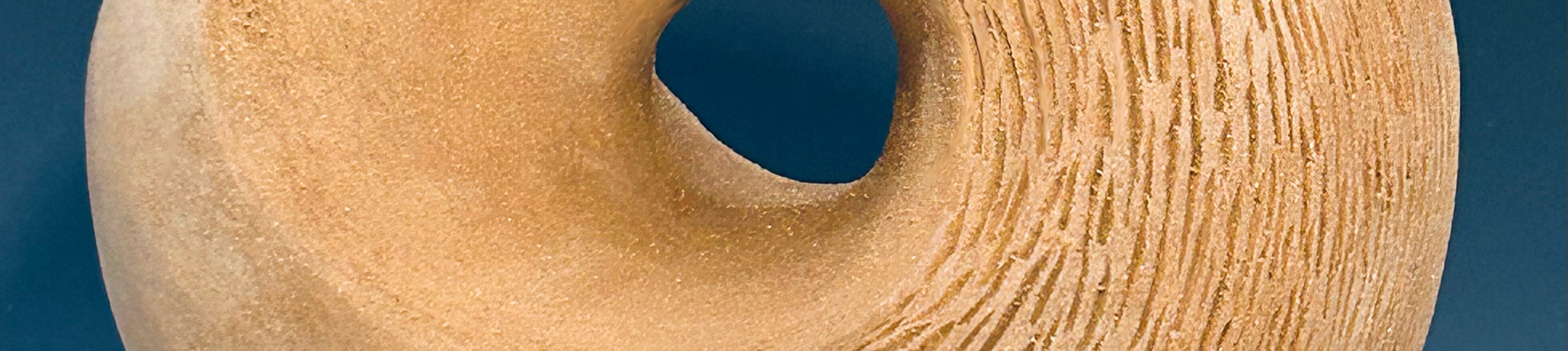 A continuous turn is extended into volume: loops fold back into themselves and open a central void. The surfaces remain materially direct—most works were soda-fired—so flame and salt add their own vocabulary to the surface structure. Rather than modelling a literal Möbius band, each piece acts as a volumetric echo: a study of continuity and inversion, where inside and outside refuse a stable hierarchy and movement is held in still, tactile mass.